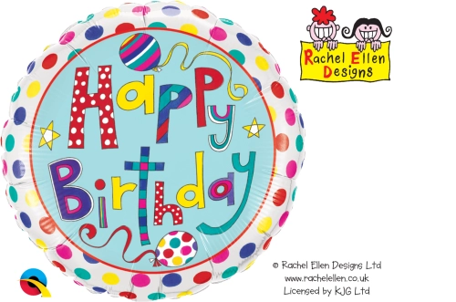 18″ RND 01Un. RE-BDAY POLKA DOTS & STRIPES