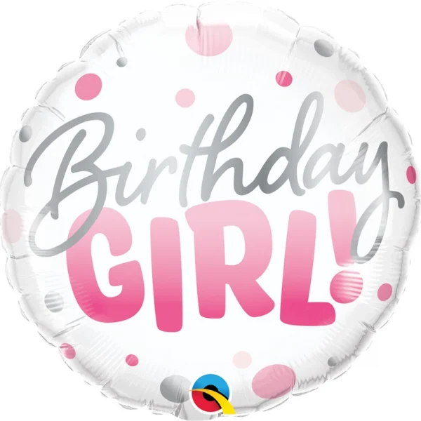 18″ RND 01Un. BDAY GIRL PINK DOTS