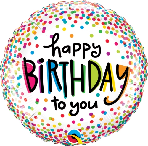 18″ RND 01Un. BDAY RAINBOW CONFETTI