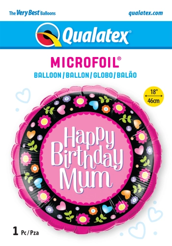 18″ RND 01Un. BDAY MUM PINK & FLORAL BORDER
