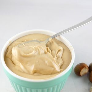 Creme de chocolate branco e avelã para recheio de todo o tipo de bolos, tortas, tartes, bombons e outras preparações.