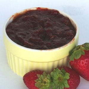 Com deliciosos pedaços de morango. Pode ser utilizado em diversas sobremesas.